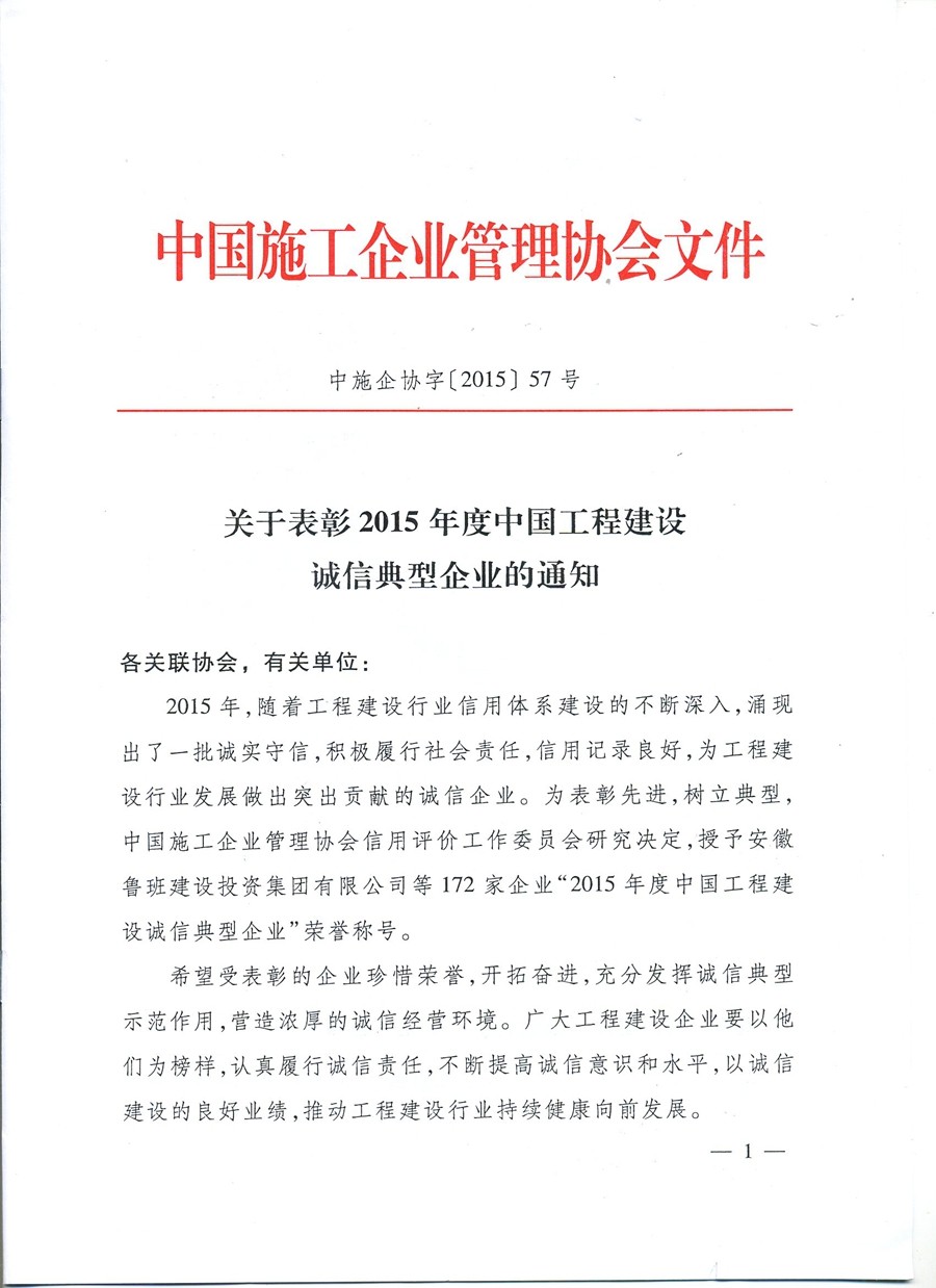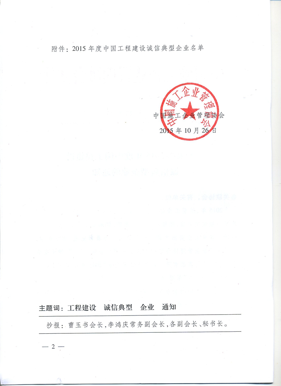 我司获中国工程建设诚信典型企业和AAA信用等级企业