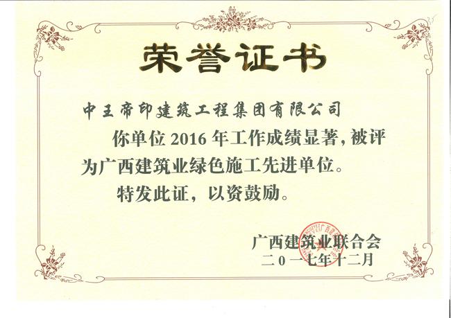 广西建筑业绿色施工先进单位